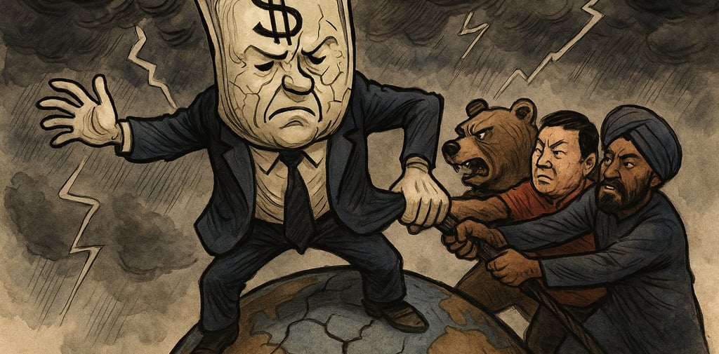 El contexto de conflicto; guerra entre Rusia y Ucrania, las tensiones crecientes en el Indo-Pacífico, la militarización global y la inflación persistente en Occidente no son eventos aislados. Son síntomas de una reconfiguración profunda del sistema internacional. En este escenario, la hegemonía del dólar como moneda de reserva internacional —sustento material del liderazgo estadounidense— comienza a mostrar signos de fatiga. Lo que está en juego no es solo la arquitectura financiera global, sino la autoridad misma de Estados Unidos como potencia rectora, cada potencia/bloque económico busca salvaguardar sus intereses con mediciones de fuerza